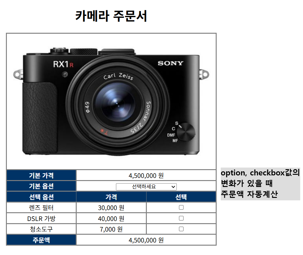 2. 카메라 가격 계산하기(change 이벤트 응용 연습)