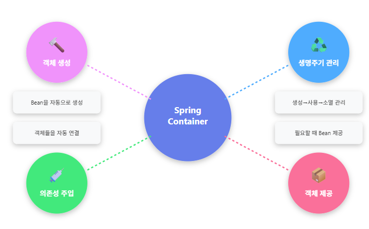각 객체가 필요로 하는 다른 객체들을 자동으로 연결해준다.