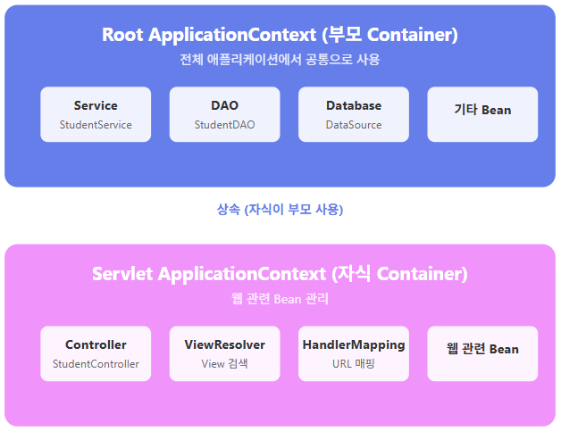 SpringMVC 에서는 Container가 부모-자식 구조로 나뉘어 있다.